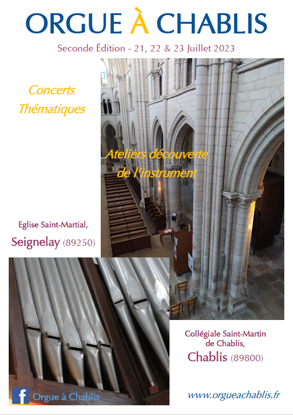 Première Édition22, 23 & 24 Juillet 2022Collégiale Saint-Martin de Chablis Deuxième Édition 21, 22 & 23 Juillet 2023Collégiale Saint-Martin de Chablis – Église Saint-Martial de Seignelay